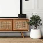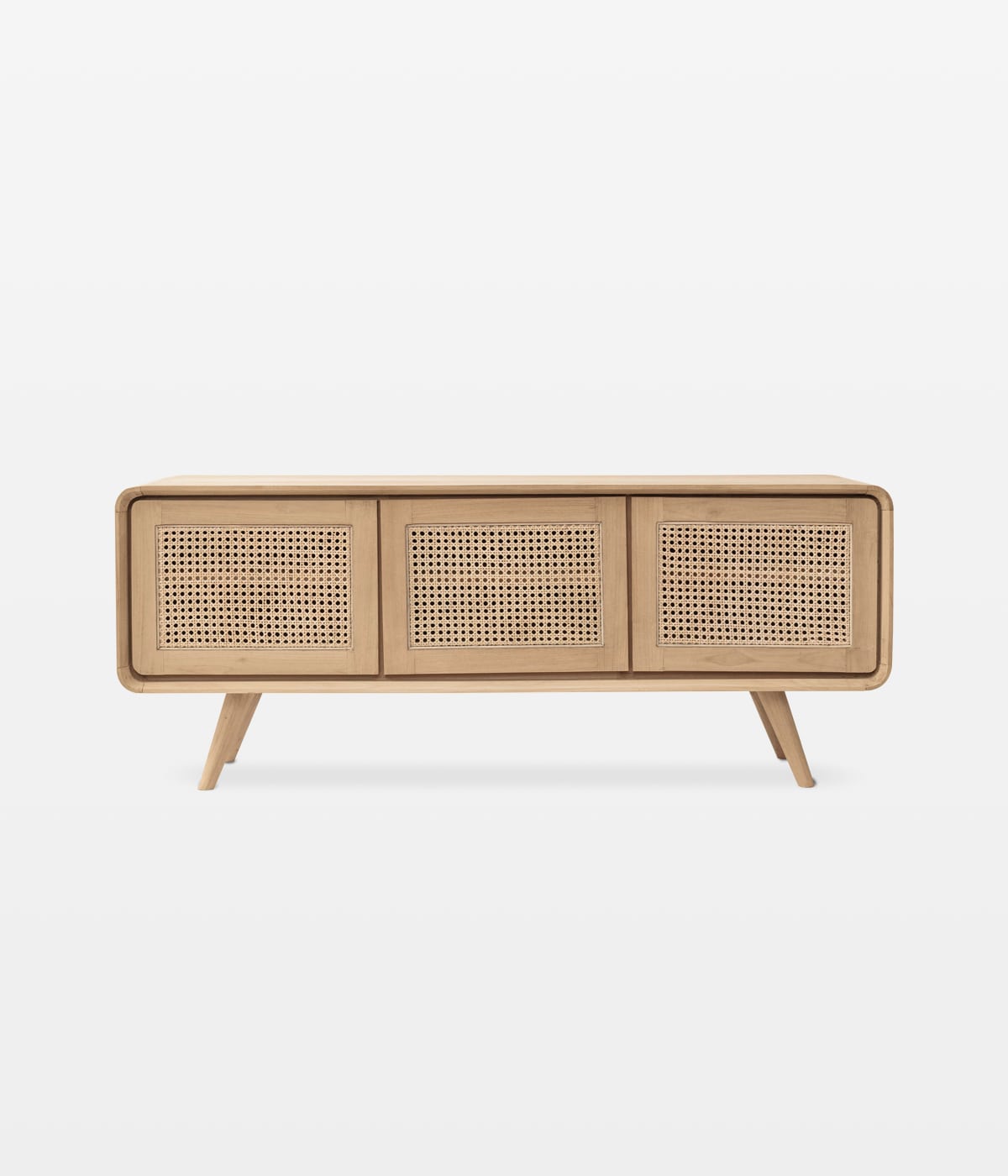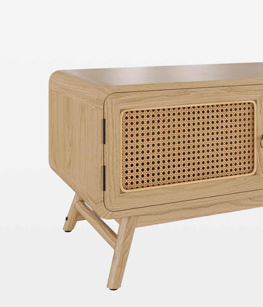 Elevate your home decor with this exquisite Mid-Century TV Cabinet featuring a seamless blend of wood and cane doors. Designed to impress, its charm and modern functionality make it the perfect addition to your living space.